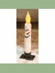 Snowman Timer Taper features a battery operated timer taper with a white wax coating with a snowman face. The candle stays on for 6 hours and then goes off for 18 hours. Requires 2 AA batteries (not included).
